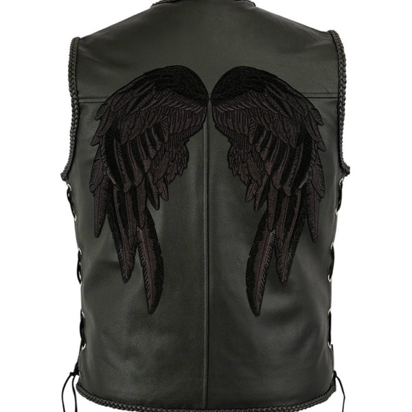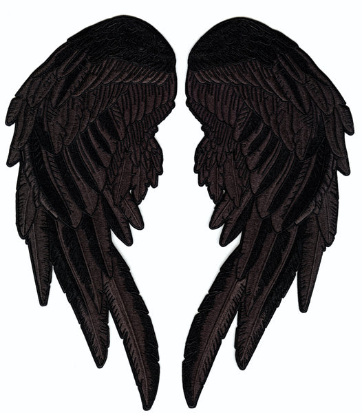 Black Angel Wing Patches 14” | "Saints & Sinners" Guardian Angels Realistic Wings and Feathers | Embroidered Back Patch