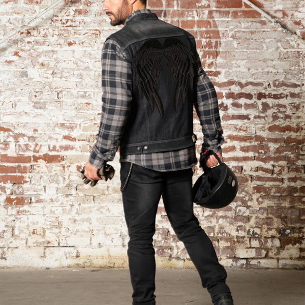 Black Gray Angel Wing Patches 14” | "Saints & Sinners" Guardian Angels Realistic Wings and Feathers | Embroidered Back Patch
